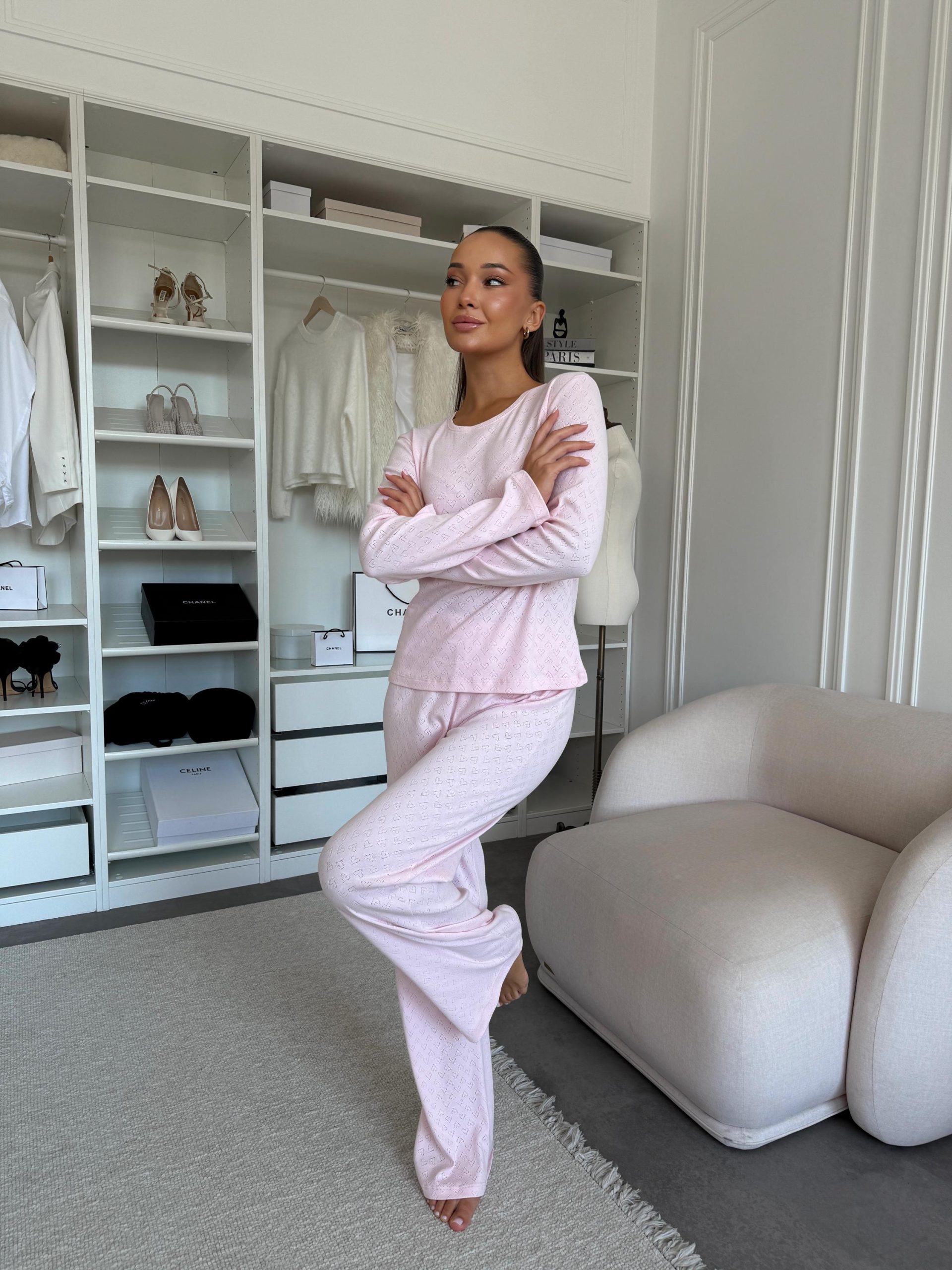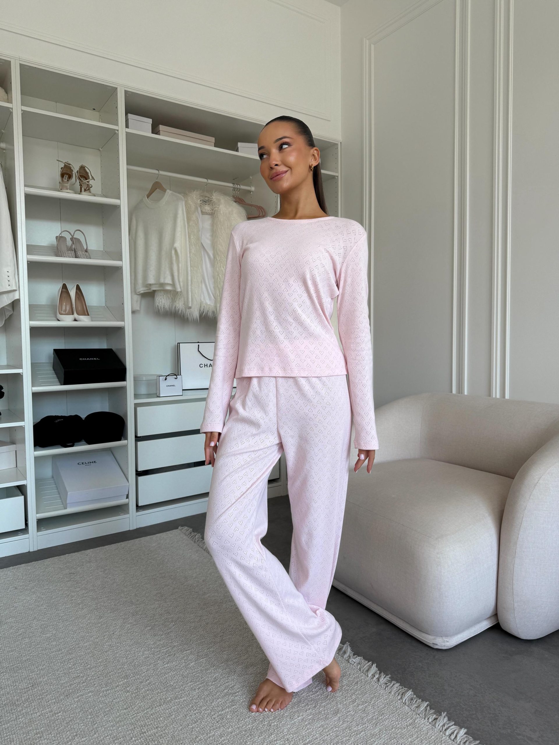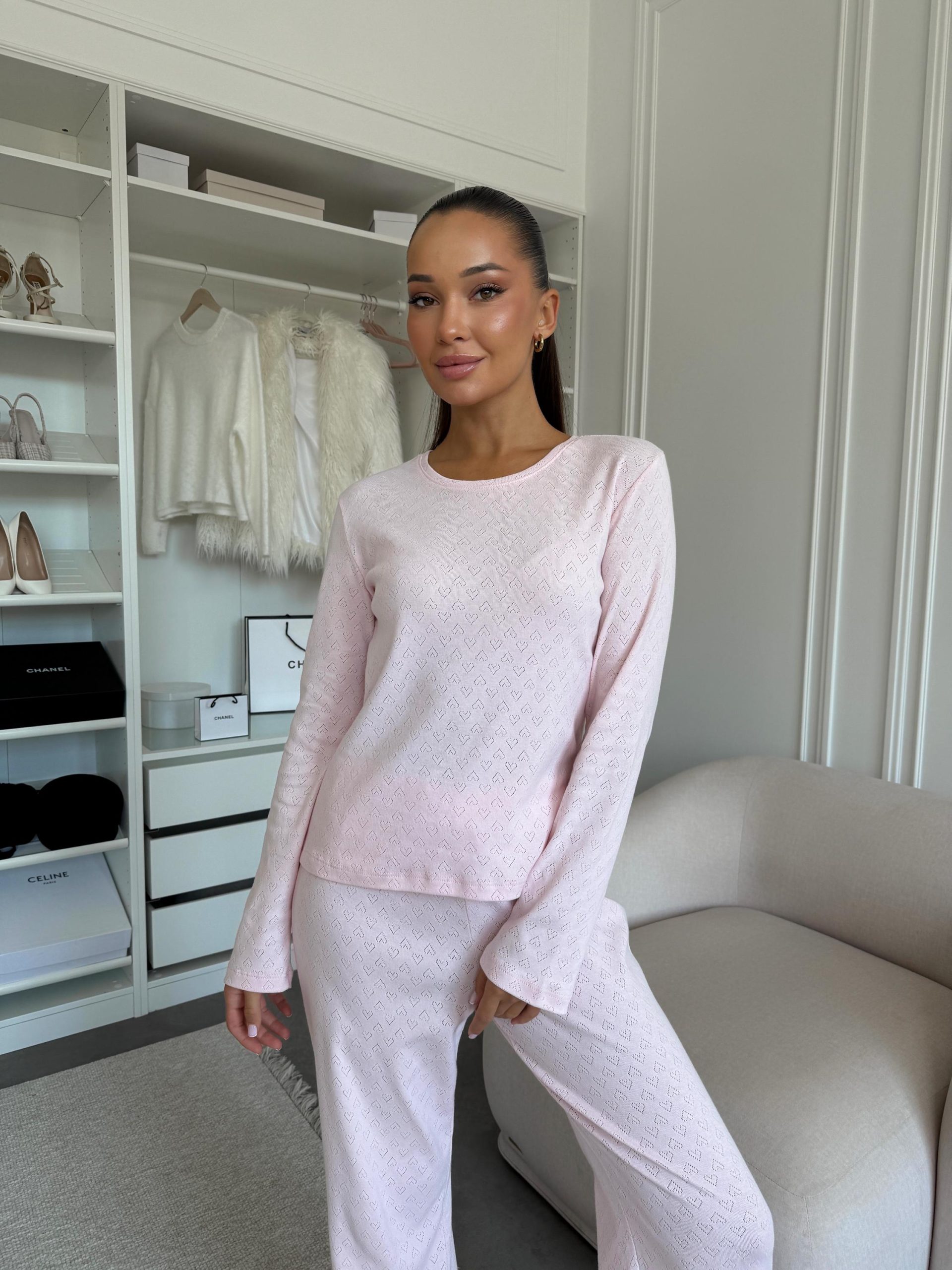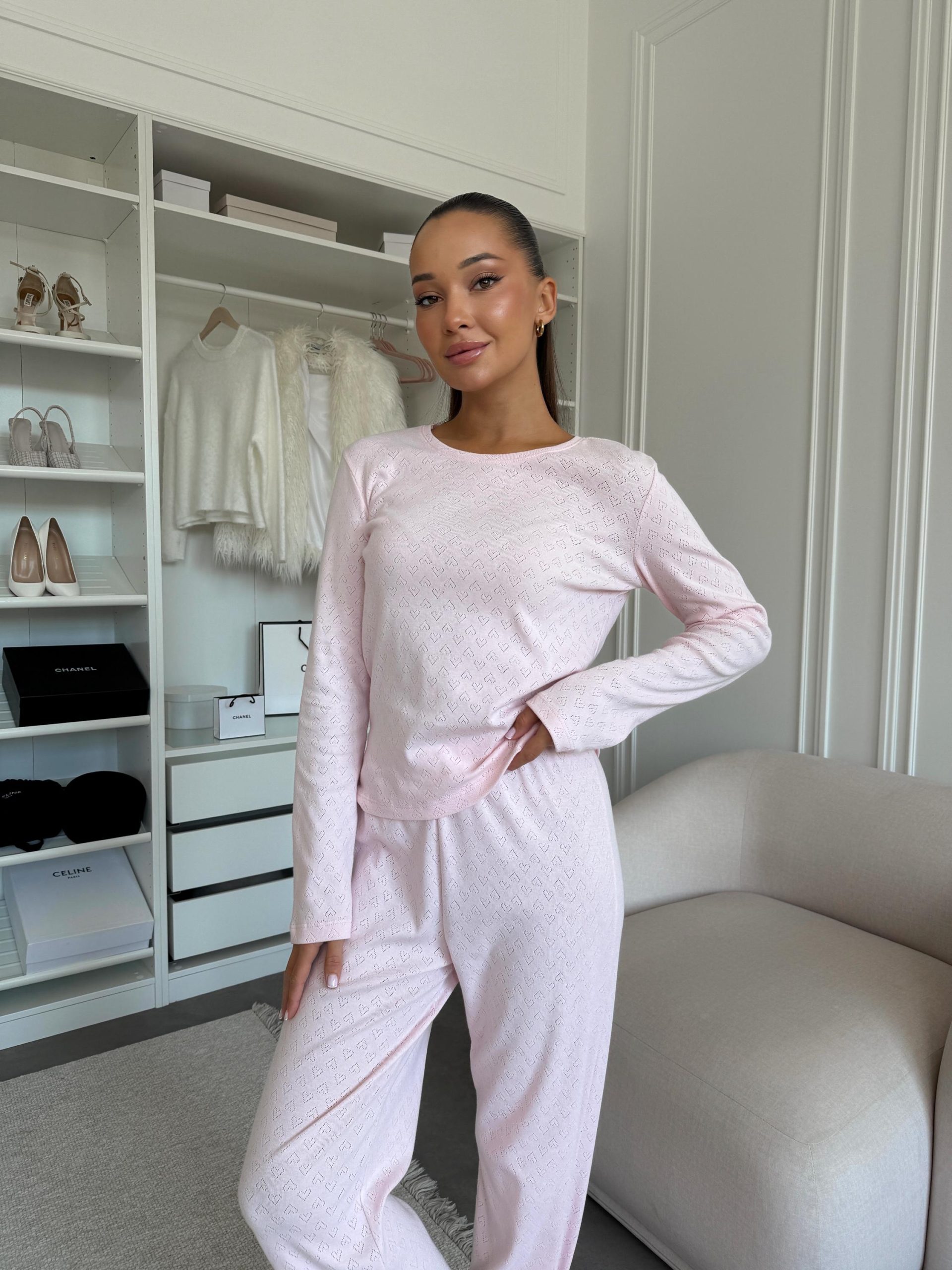 Experience the perfect mix of comfort, softness, and femininity with the Rose Amour pajama set. This romantic two-piece includes a long sleeve top (60 cm) and relaxed-fit pants (106 cm) made from 100% breathable cotton (transfer ribbed knit).