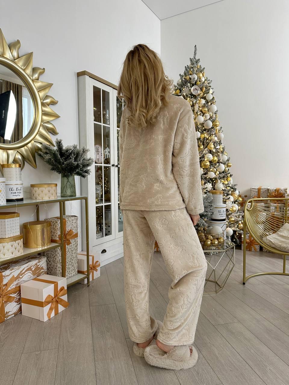 This pajama set is crafted from premium velsoft fabric (100% polyester, 280 g/m²), smooth on the outside and fluffy on the inside. Lightweight yet warm, it quickly adjusts to body heat and keeps you comfortable all night without overheating, thanks to its breathable structure.