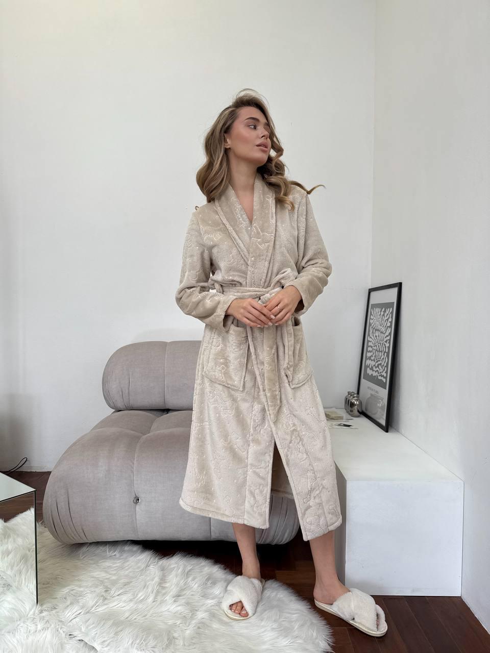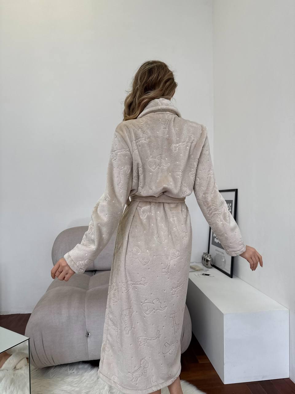 The long cut provides full coverage and maximum warmth, while the animal print pattern adds a fun and cheerful touch to your loungewear. Perfect for relaxing at home, wrapping up after a bath, or adding an extra layer of comfort on winter nights.