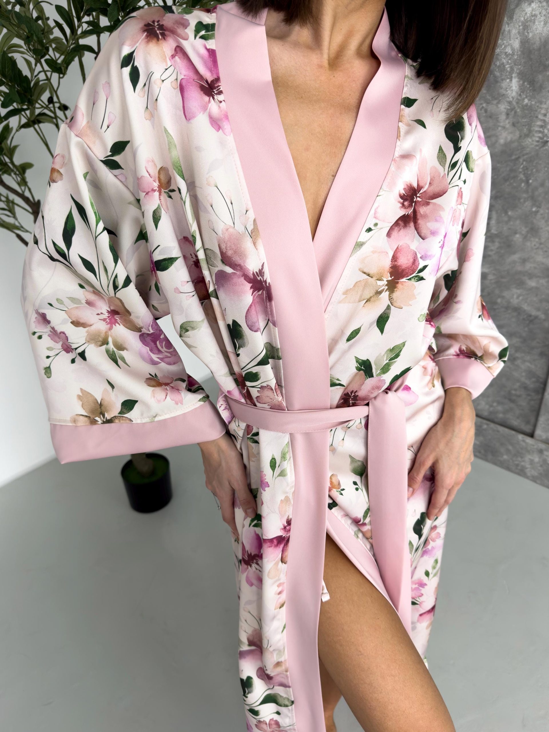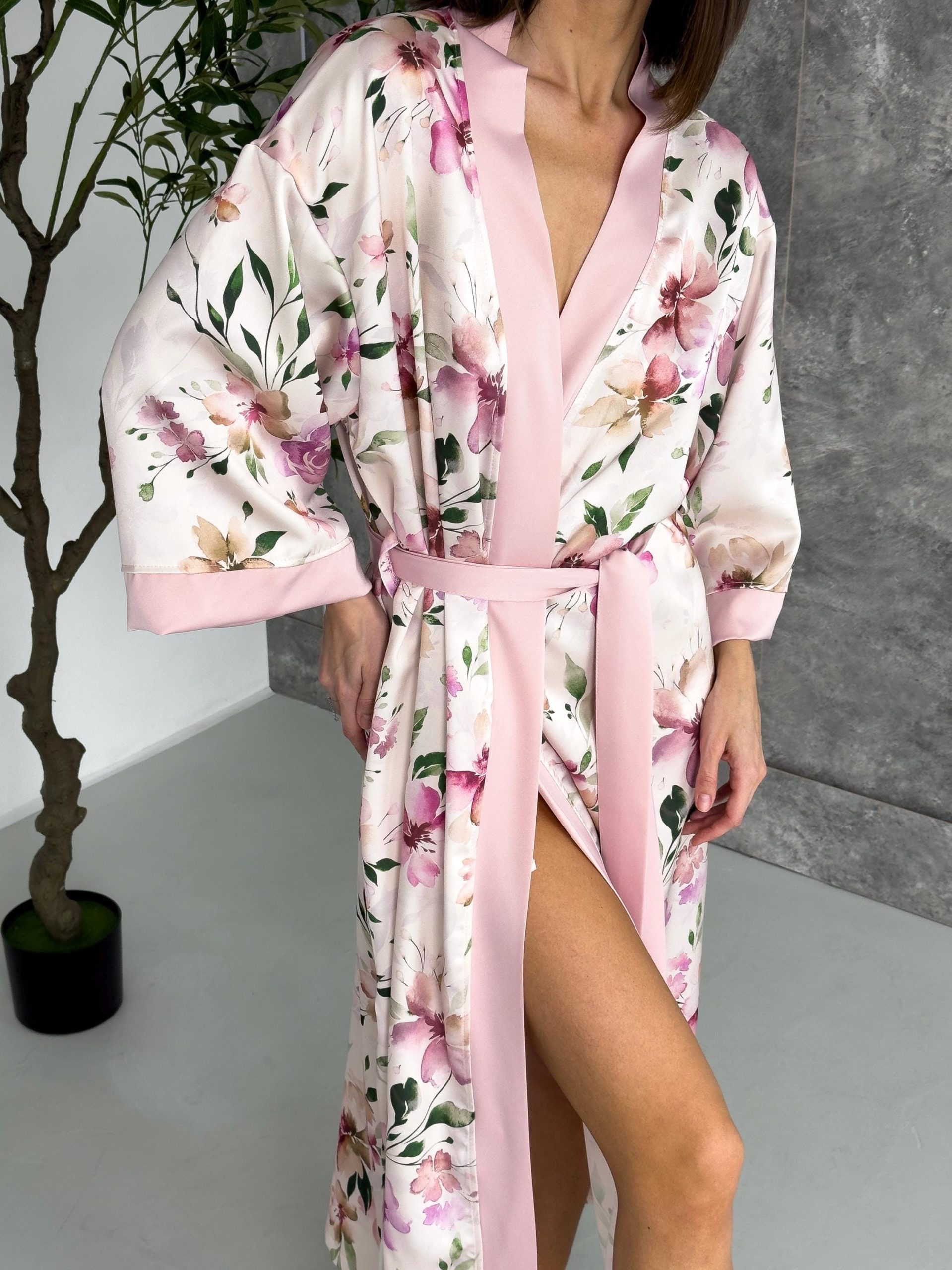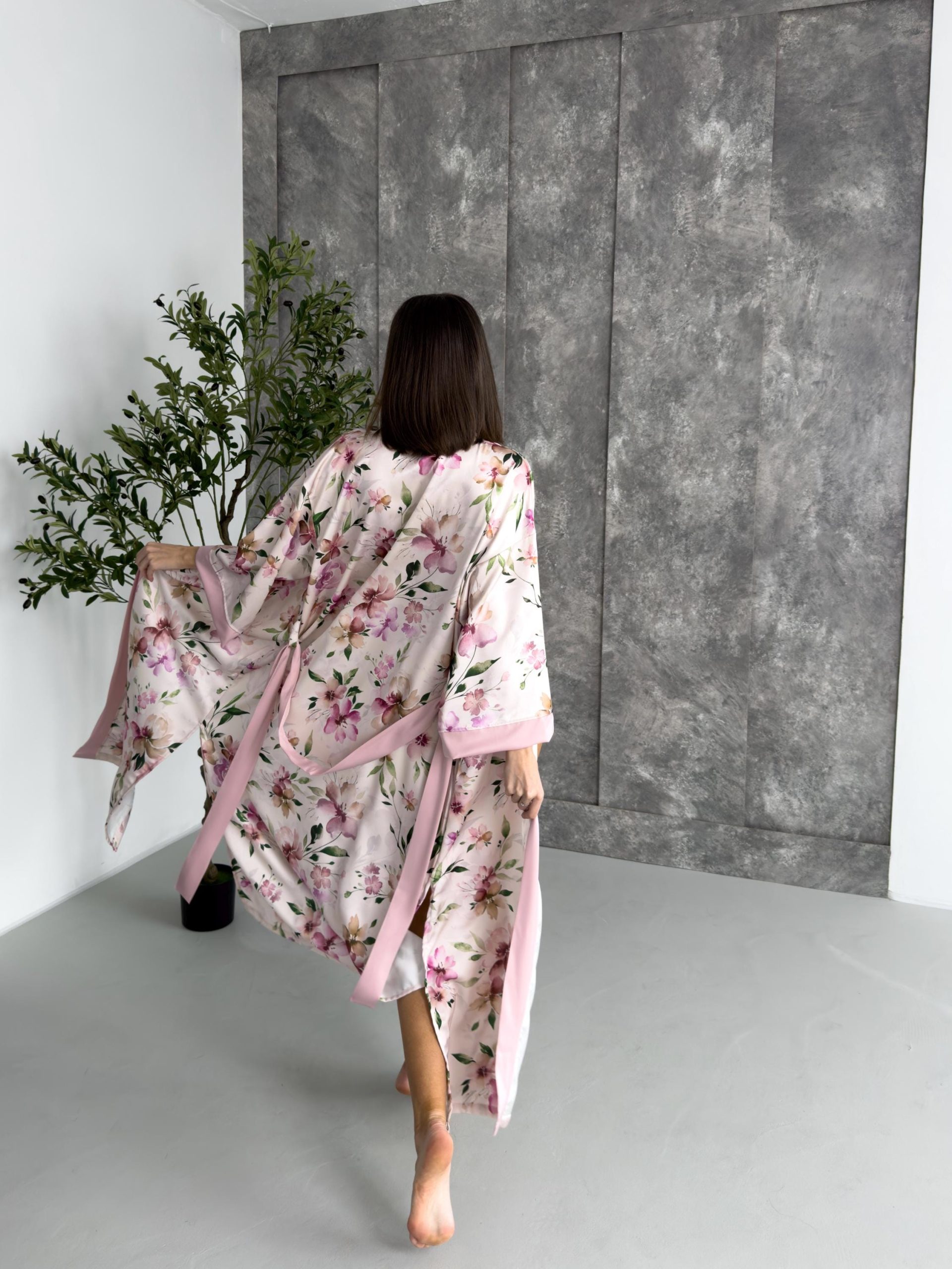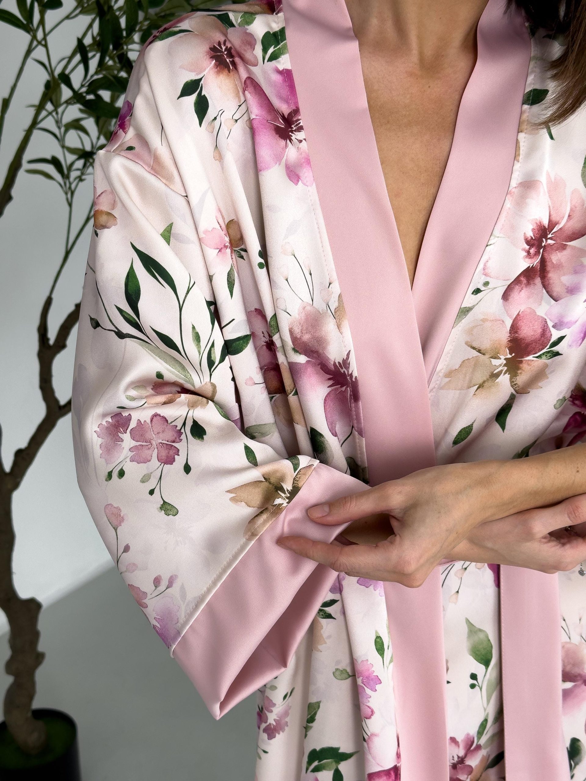 Indulge in the luxury of softness, elegance, and tranquility with this floral satin kimono robe. Designed for the woman who cherishes calm mornings, self-care rituals, and graceful style, this robe wraps your body in lightweight satin that feels like a second skin.