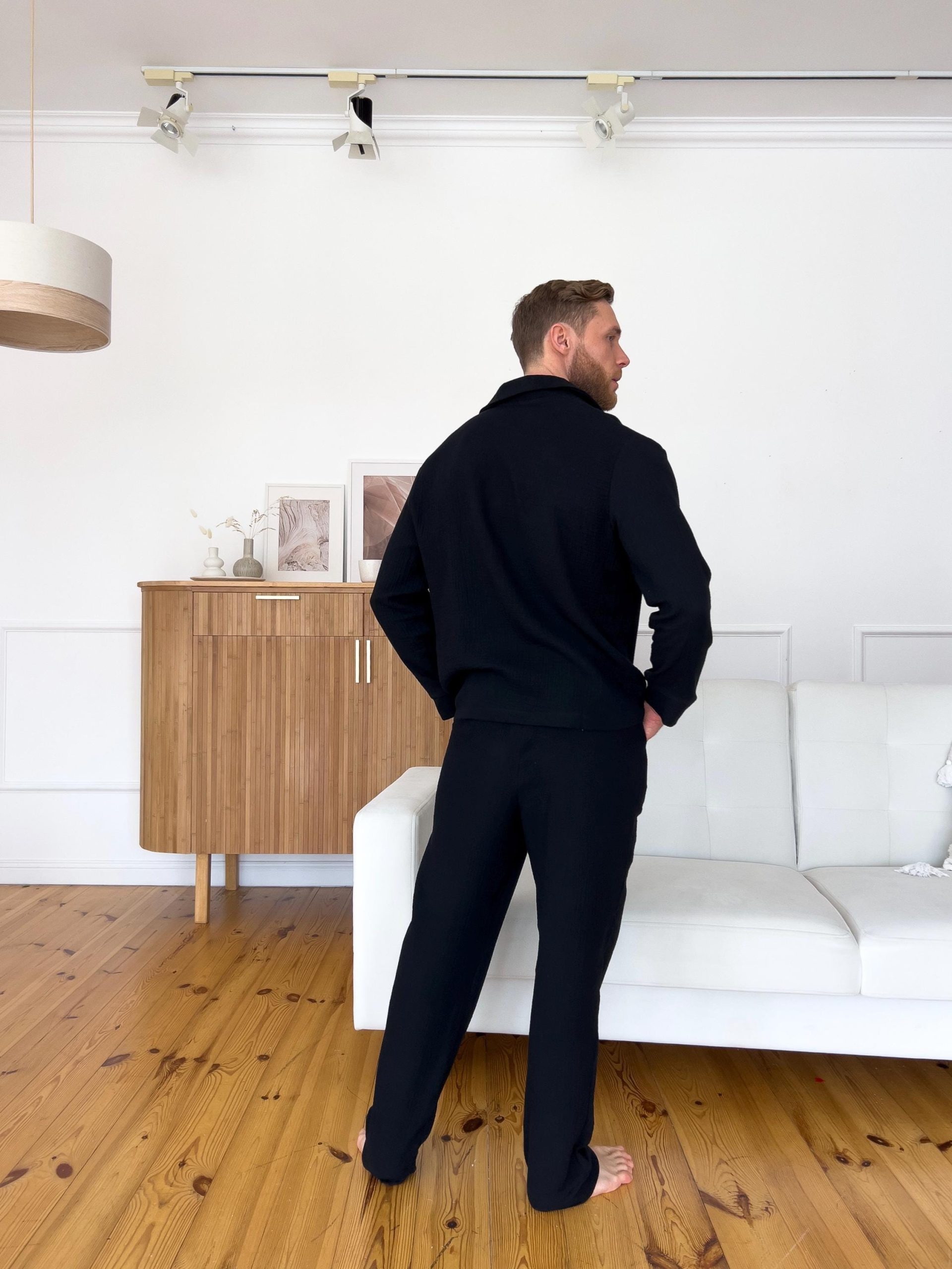 Men’s 100% Muslin Pajama Set, Long Sleeve Button Shirt&pants, Organic Cotton 2-layer Lounge Set,soft Sleepwear With Pockets,mens Relaxed Fit