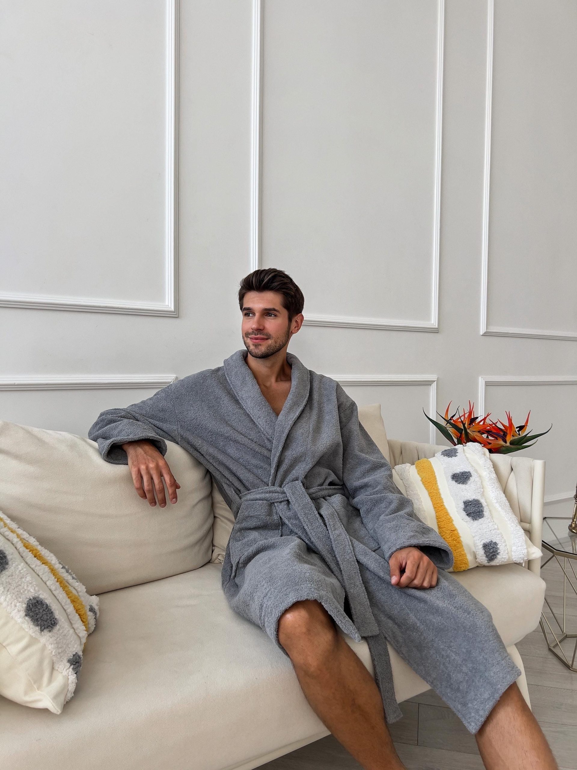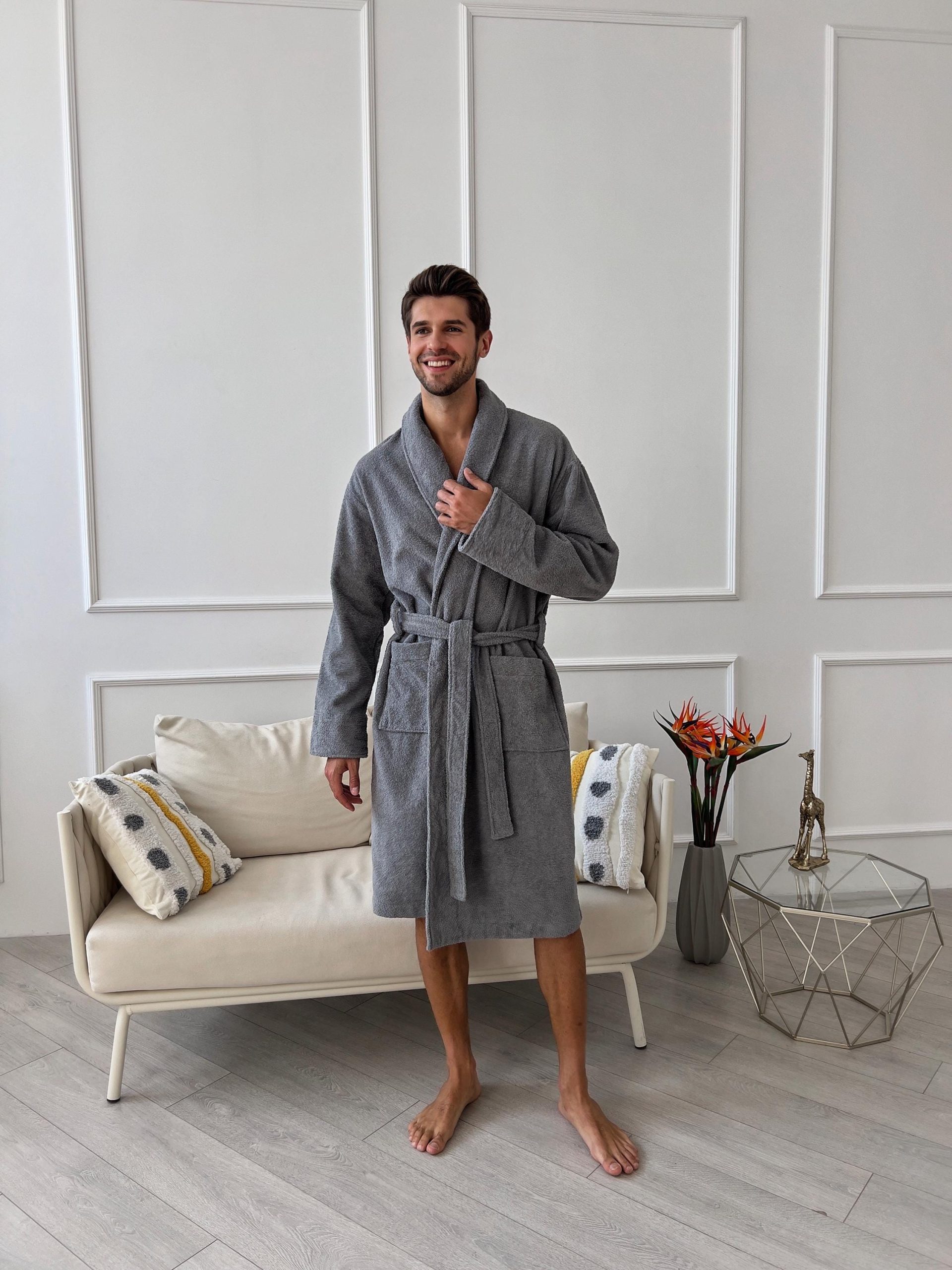 Wrap yourself in luxurious softness with this menās terry cloth bathrobe, crafted from 100% premium cotton. Designed with a classic shawl collar, adjustable cuffs, and spacious pockets, it combines sophistication, functionality, and everyday comfort.