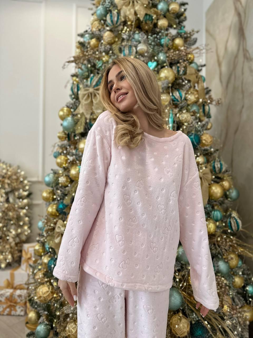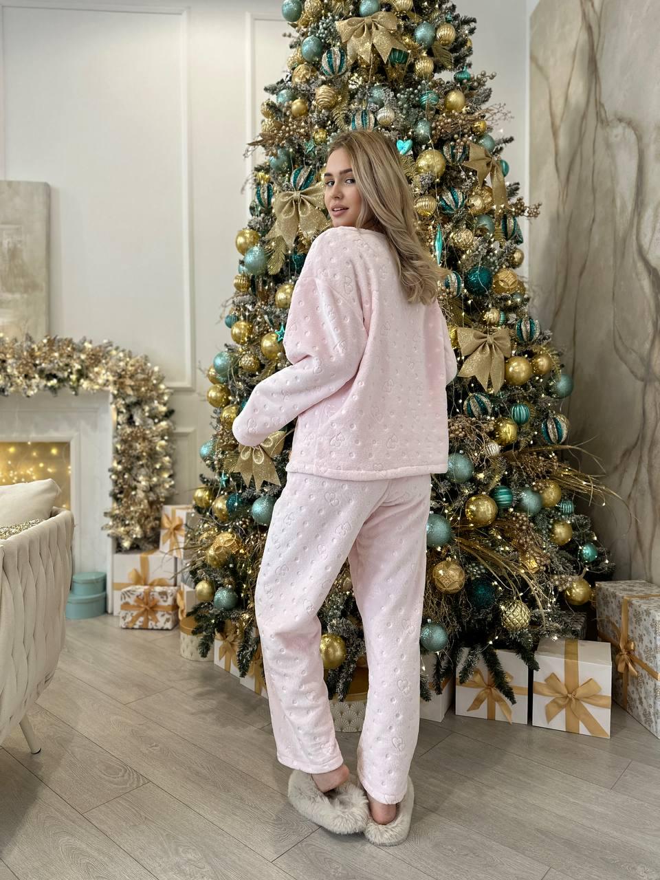 Stay warm, soft, and stylish all winter long with this pink heart pajama set, made from luxurious velsoft fabric. Velsoft is smooth on the outside and plush on the inside, creating the perfect balance of lightness, breathability, and cozy warmth.